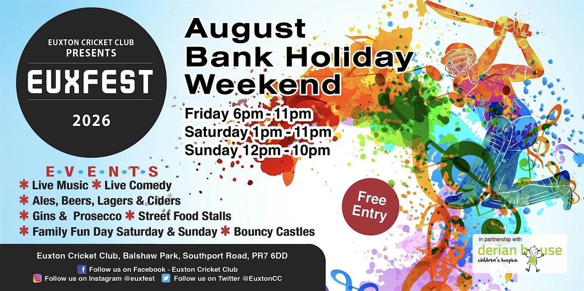 Euxfest 2026 Comedy & Music Festival at Euxton Cricket Club