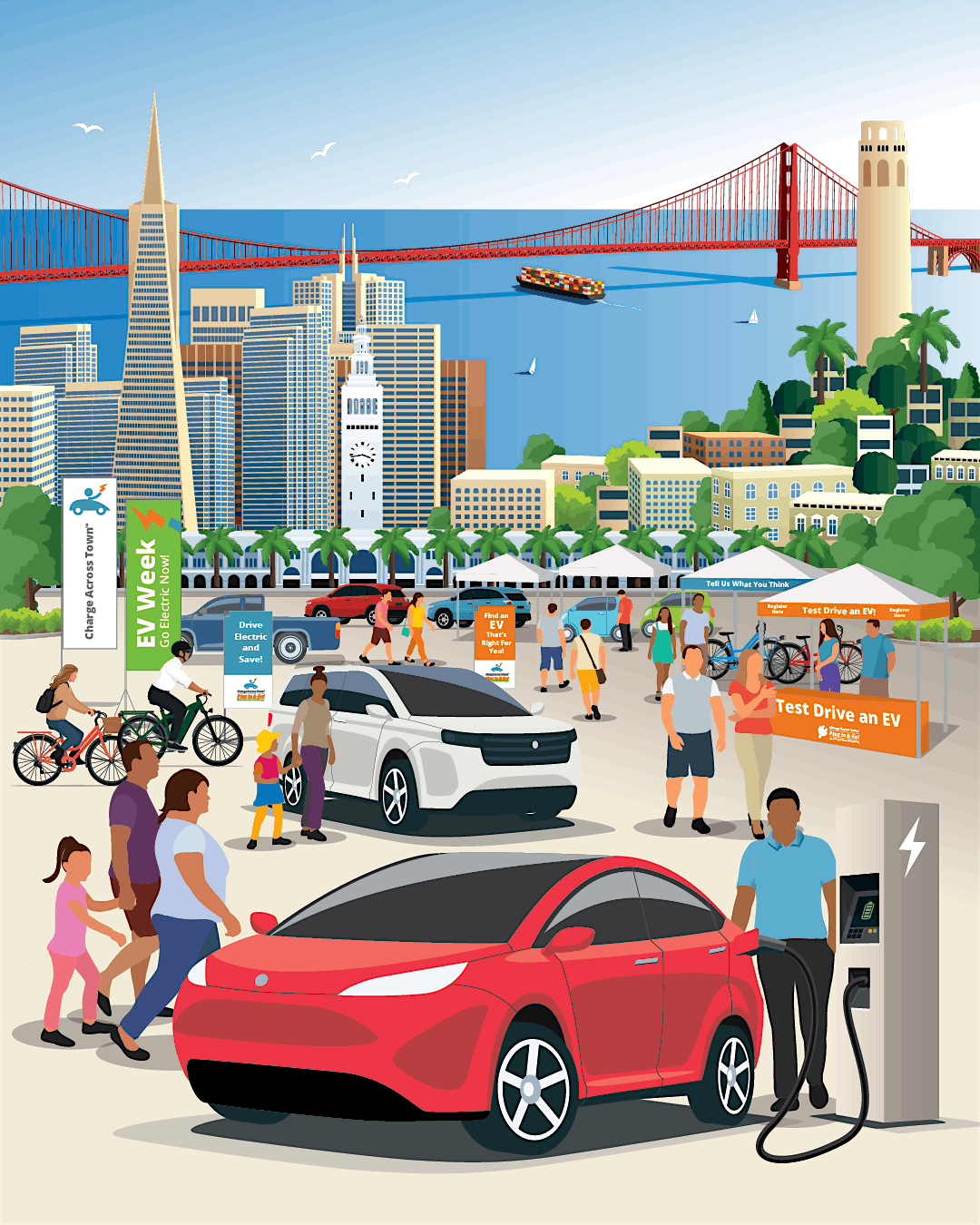 In its 13th year, Charge Across Town is bringing its national Plug In & Go program to San Francisco as part of EV Week 2025. Taking place at Pier 27, over Fleet Week(end), EV Week will once again highlight the consumer choices for clean transportation, from electric cars, public transit, self driving AVs, and emobility options, the growing EV infrastructure, and economic benefits of driving electric!