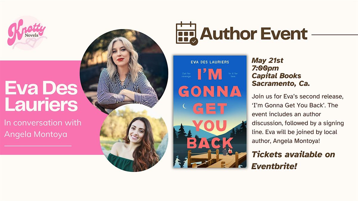 Join us for the release of ‘I'm Gonna Get You Back’ by Eva Des Lauries! This event includes an author discussion followed by a signing line. Each ticket comes with a copy of the book. Eva will be joined by local author, Angela Montoya!