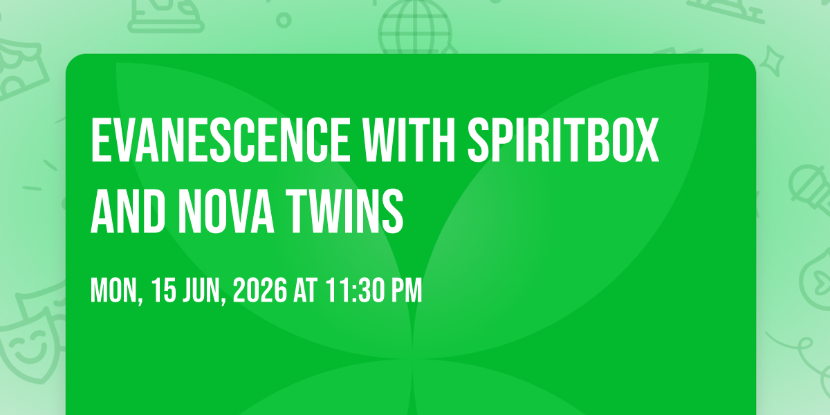 π Location: 36.1591, -86.7785π Be part of history at Evanescence with Spiritbox and Nova Twins, an extraordinary gathering that will captivate your imagination! ποΈ The prestigious Bridgestone Arena in Nashville, TN sets the stage for an unforgettable experience on June 15th, 2026 at 11:30 PM. β¨ They are bringing together the finest elements of entertainment and innovation to create moments that will take your breath away. From the moment you arrive, you'll be immersed in an atmosphere of wonder and excitement. π― This carefully planned event ensures every guest experiences something truly special. π Early booking is recommended for this must-attend event of the season!