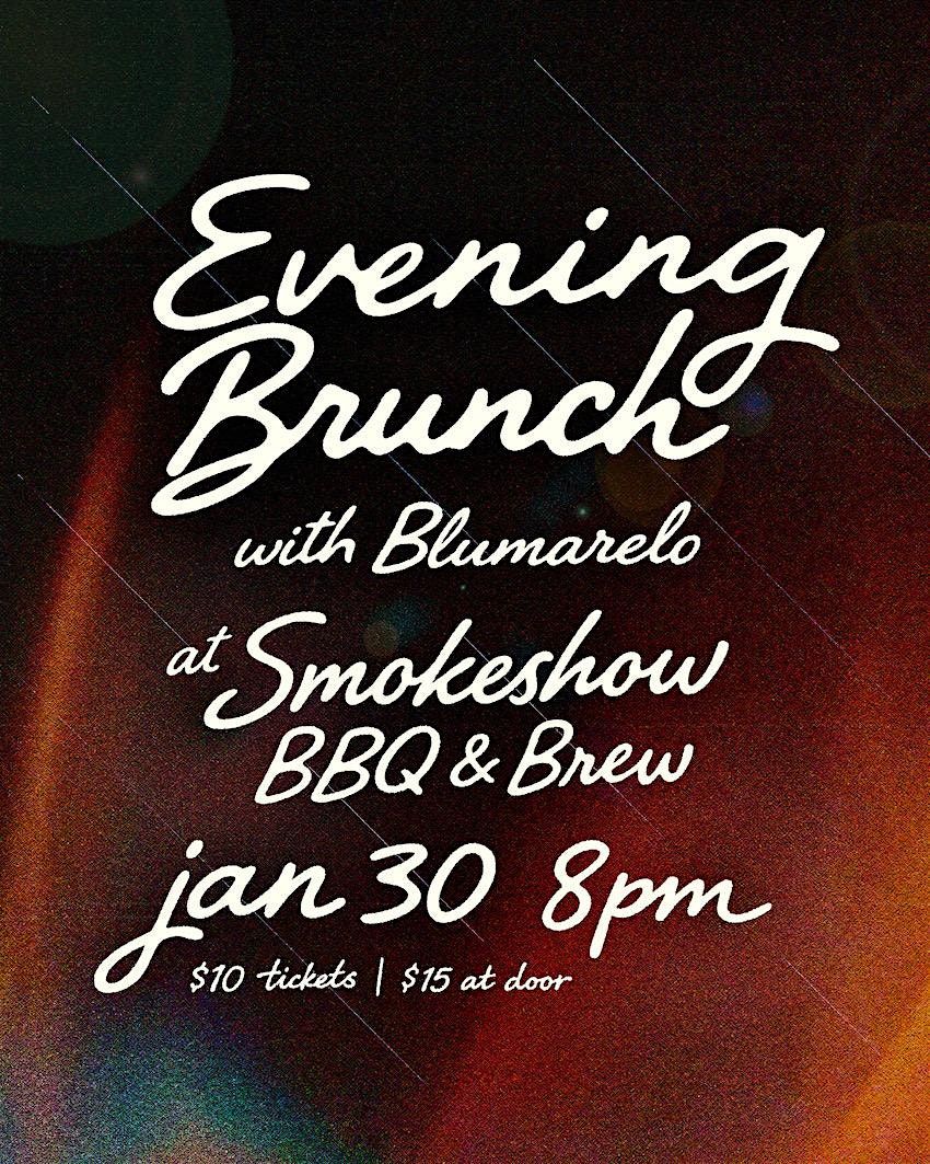 Join Evening Brunch with special guest Blumarelo for a night of new music, energy, and an all-night party vibe at Smokeshow BBQ & Brew.