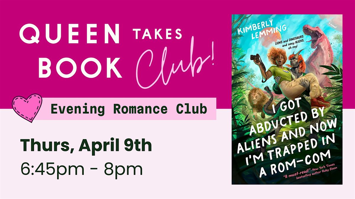 This month we're reading I Got Abducted by Aliens and Now I'm Trapped in a Rom-com by Kimberly Lemming. I Got Abducted by Aliens and Now I'm Trapped in a Rom-com is a high-spice, polyamorous alien rom-com with a talking lion.