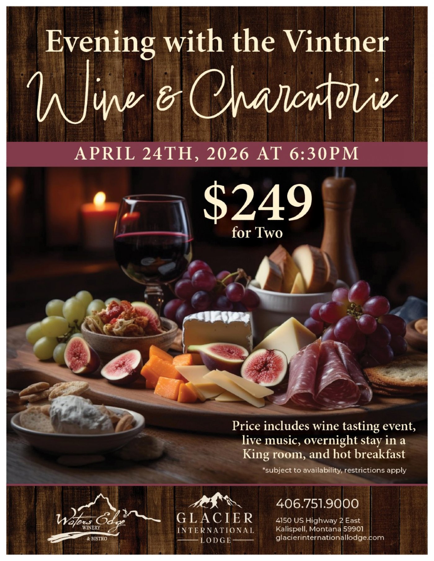 Join Waters Edge Winery and Glacier International Lodge for the Spring Wine Tasting Event.