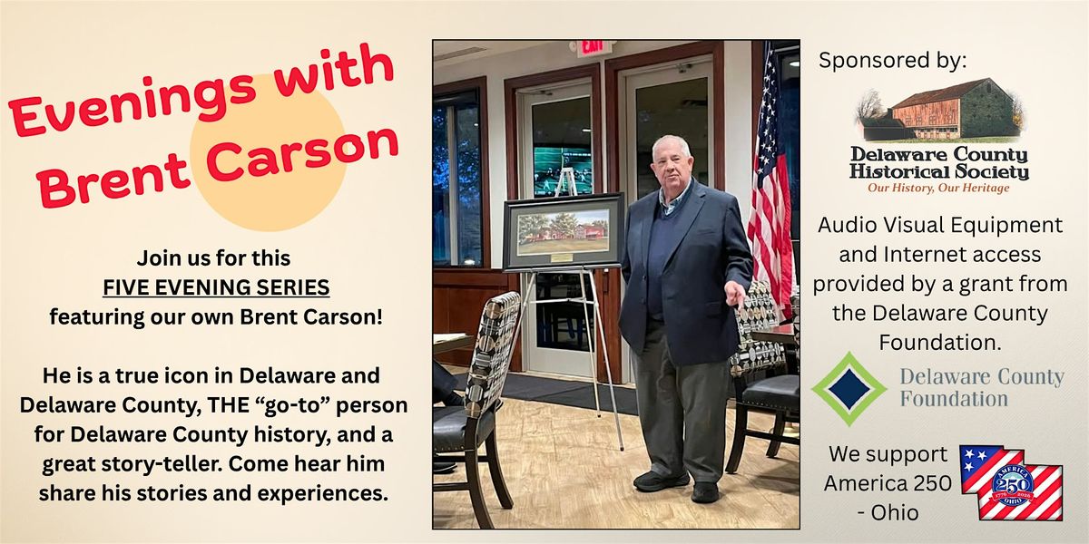 The Delaware County Historical Society is hosting a series of five talks with Mr. Brent Carson. The talks will be held in the cozy confines of the Carriage Room of The Barn at Stratford from 6:30 to 7:30PM. You can purchase a season ticket for all five talks at this time. We will also offer individual talk tickets in separate Eventbrite listings. The planned talks are: