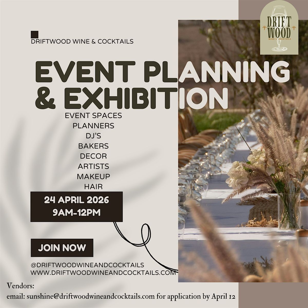 Join us at Driftwood Wine & Cocktails on April 24, 2026 at 9:00 AM (Eastern Daylight Time) for a fun and casual gathering all about event planning! Whether you’re a pro or just curious, come explore the latest trends, meet cool people, and get inspired. Don’t miss out on this awesome chance to dive into the world of events with great vibes and tasty drinks!