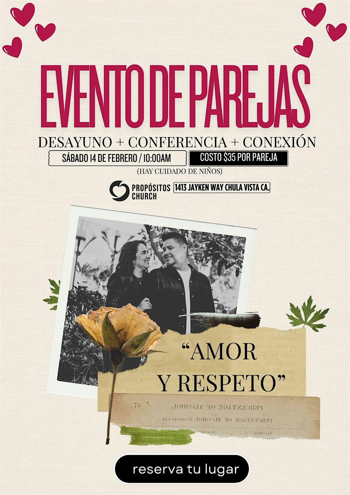 Sé parte de nuestro evento para parejas “Amor y respeto” En este tiempo te acompañaremos a descubrir cómo el aprecio, la honra y el respeto intencional fortalecen un matrimonio sano, fuerte y lleno de amor. Etiqueta a tu pareja con quien te gustaría asistir y vivan juntos este momento especial. 14 de febrero 10:00 am Propositos Church