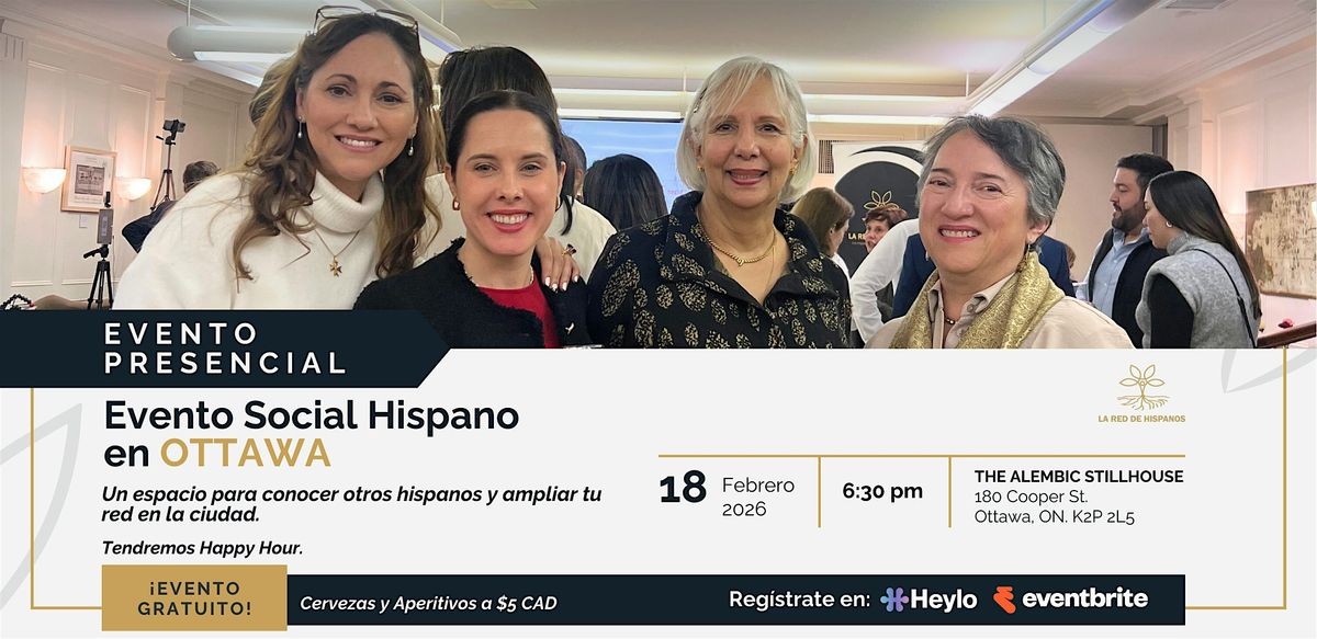 La comunidad hispana se encuentra en Ottawa! Te invitamos al primer Evento Social Hispano en Ottawa del 2026, un espacio para conversar, crear conexiones y fortalecer nuestra red mientras disfrutamos de un buen happy hour.