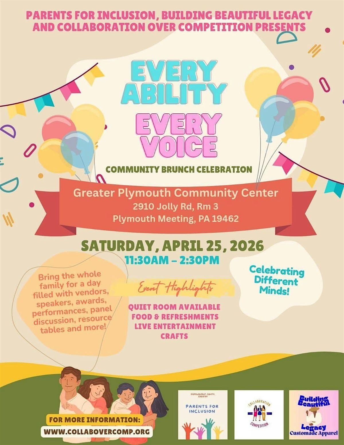 Collaboration over Competition, Parents For Inclusion, and Building Beautiful Legacy invite you to Every Ability Every Voice on April 25th, 2026.