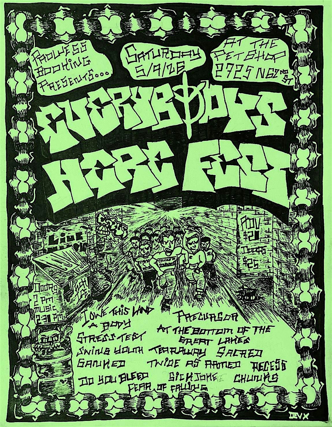 I Owe This Land a Body (Twin Cities PV), Precursor (Springfield Hardcore), At the Bottom of the Great Lakes (Madison Metalcore), Stress Test (Madison Hardcore), Swing Youth (DSM Hardcore), Tearaway (DSM Hardcore), Sacred (Omaha Straight Edge), Ganked (Fargo Hardcore), Twice as Armed (Sioux Falls Hardcore), Sick Joke (Chicago Hardcore), Do You Bleed? (DSM Negative Hardcore), Recess (Iowa City PV), Chunks (Iowa City Hardcore), Fear of Falling (Omaha Metalcore)