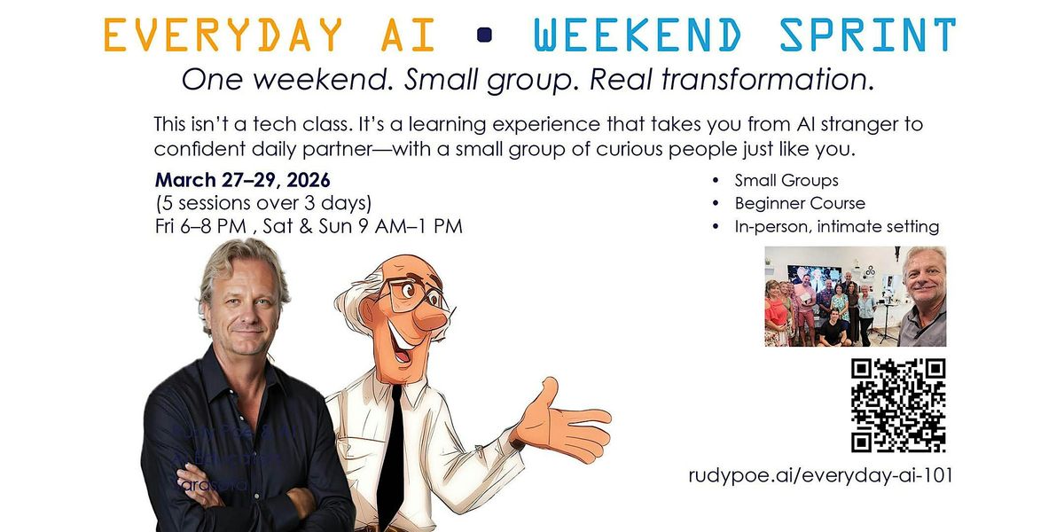 I'm Rudy Poe — Emmy-winning filmmaker, serial entrepreneur, AI educator and Sarasota local on a mission to close the AI knowledge gap. Spoiler alert: it's easier than you think.