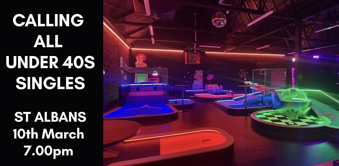 Join us in St Albans for a high-energy social games night at an indoor crazy golf venue, where friendly competition meets playful flirting. Expect colourful courses, plenty of laughs, and the perfect excuse to chat while doing something fun together.