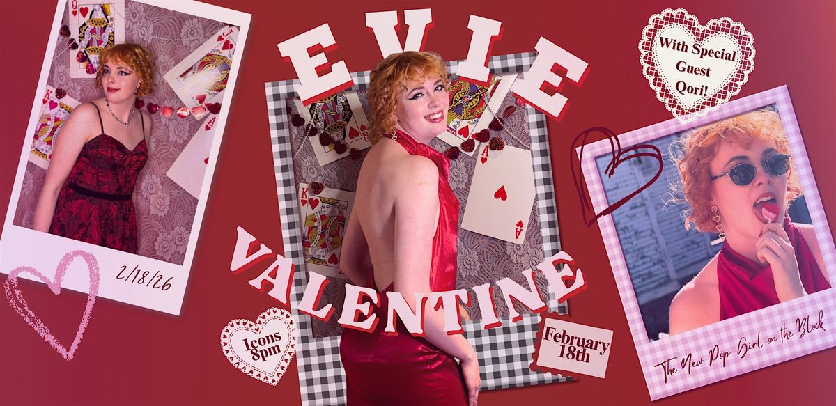 Come Celebrate Valentine’s Day with some of Evie’s favorite love songs, break up songs, and of course, Evie originals that you know and love! We can’t wait to see you at Icons, our favorite place to be!