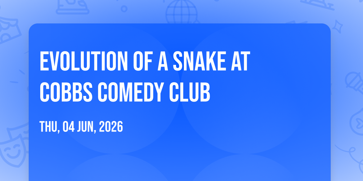 π Prepare to be amazed at Evolution of a Snake at Cobbs Comedy Club, the most anticipated gathering of the season! π Set against the stunning backdrop of Cobbs Comedy Club in vibrant San Francisco, CA, this event promises to redefine your expectations. π Mark your calendars for June 4th, 2026 at 12:00 AM and get ready to immerse yourself in an atmosphere of wonder and excitement. β¨ From the moment you arrive, you'll be transported into a world where memories are made and stories come alive. They have crafted an experience that perfectly harmonizes entertainment, innovation, and community spirit. π Join us as we create moments that will be discussed for years!