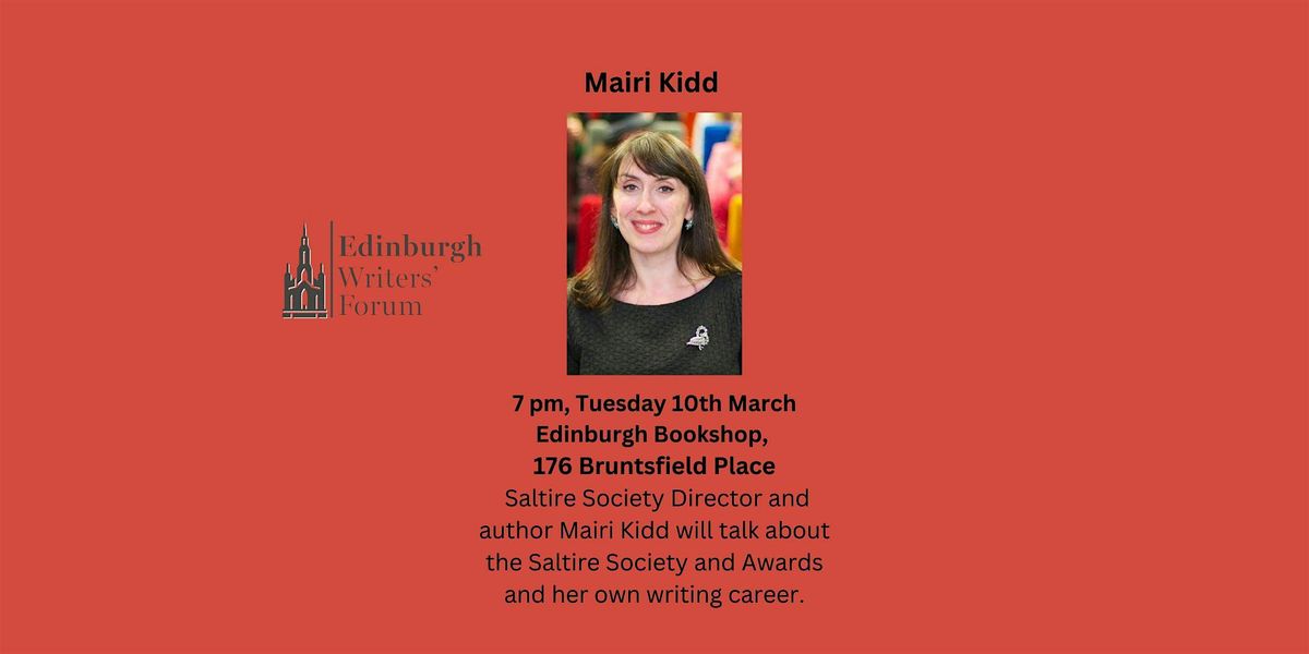 Mairi Kidd will be joining us on the 10th of March for our next meeting of the Edinburgh Writers’ Forum. Mairi will talk about her role as Director of the Saltire Society, as well as answering questions about her own writing career.