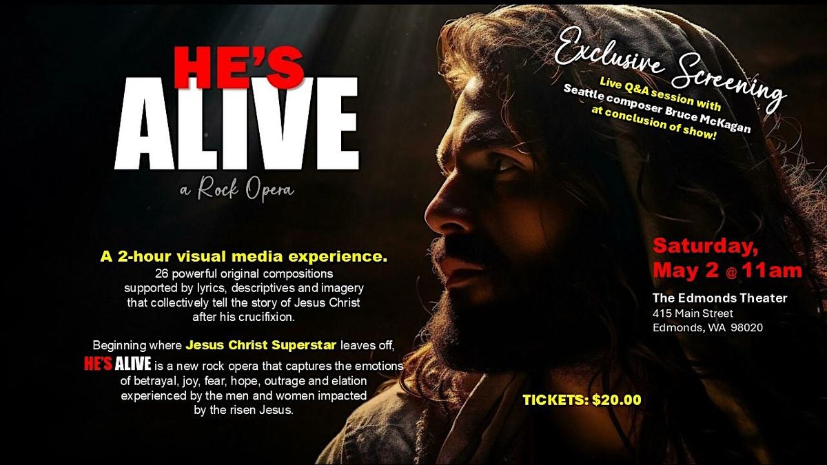 Exclusive Screening of HE'S ALIVE a rock opera in stereo sound