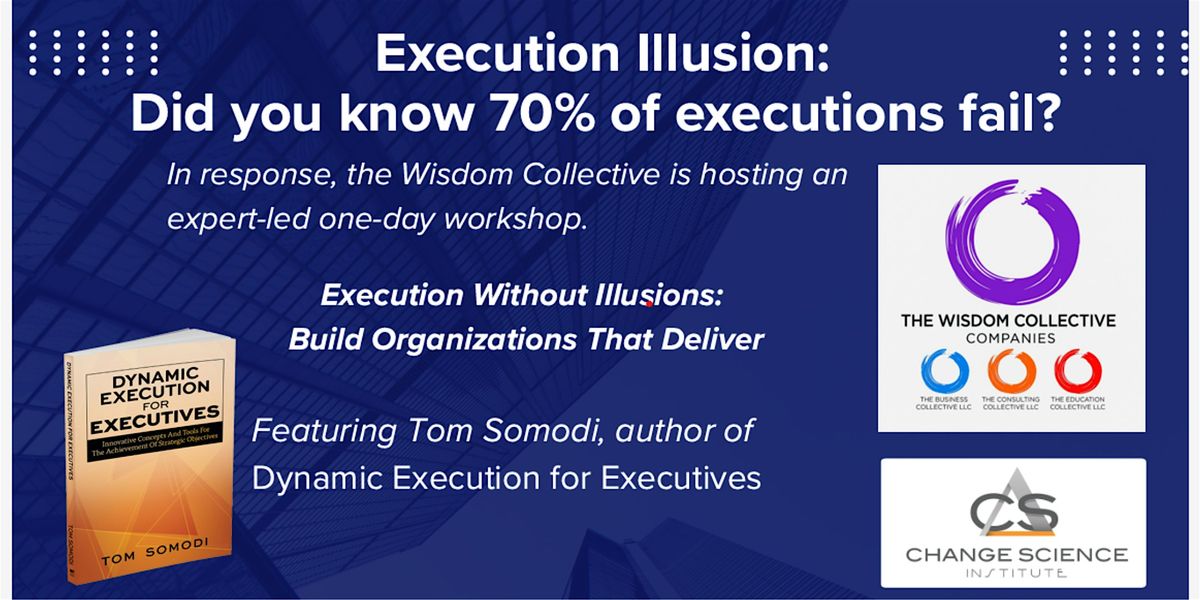 Execution Without Illusions: Build Organizations That Deliver is a full-day executive intensive hosted by The Wisdom Collective and featuring Tom Somodi, author of Dynamic Execution for Executives.