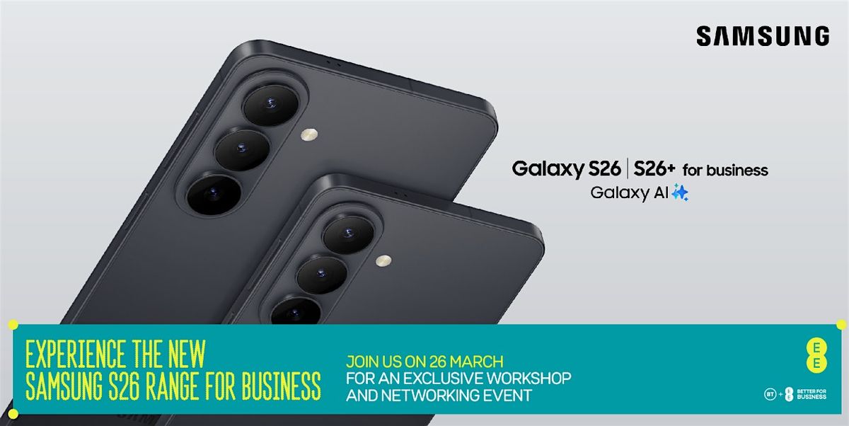 The Samsung team will be in store to demo the S26 and walk you through the features that help you stay productive, protect your business and work with confidence. Our in‑store Business experts will also be available to answer questions and share practical guidance. You will have time to network, swap ideas and build new connections in your business community.