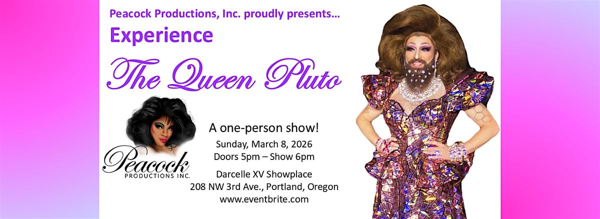 Join Peacock Productions, Inc. and hostess Poison Waters for this one-person show featuring the bearded Queen Pluto. Pluto will share stories of her past and dreams for her future in this exciting show filled with drag performances, love, and laughter.