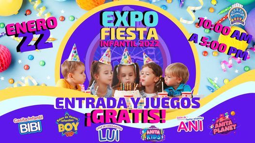 Ven con tu familia este 22 de Enero del 2022 a la gran Expo Fiesta Infantil 2022. Donde encontrarás todo lo necesario para que la fiesta de tus pequeños sea Inolvidable... ¡ENTRADA Y JUEGOS GRATIS!
