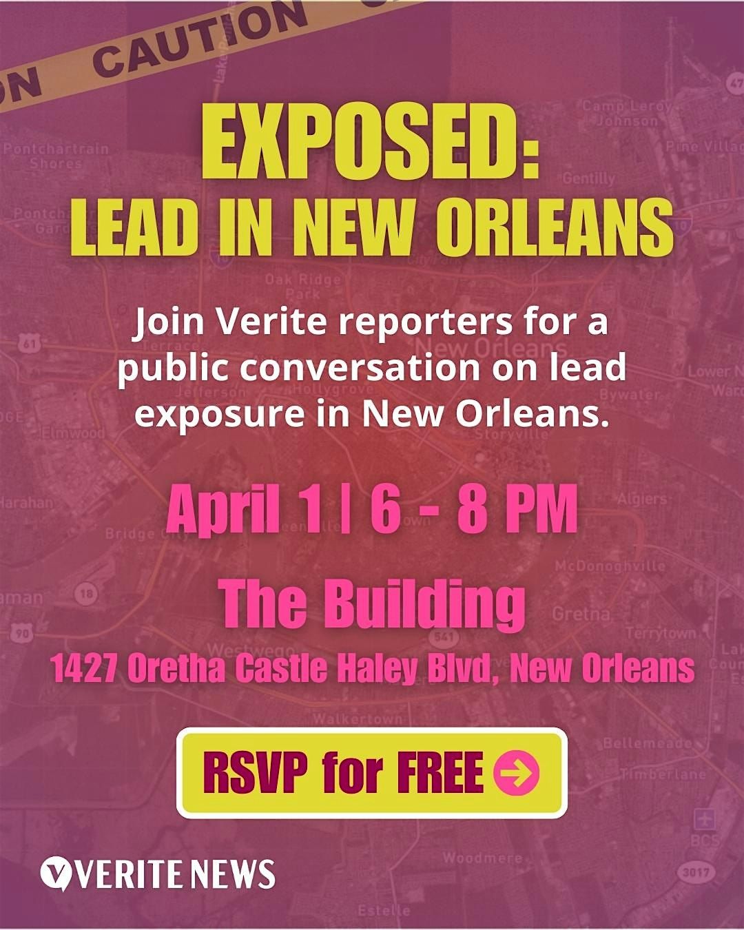 Exposed: Lead in New Orleans is a public forum tied to Verite News’ recent investigation into lead exposure across the city. The event gives readers, community members, public health voices, housing and environmental justice advocates, and local stakeholders the opportunity to hear directly from Verite reporters about what the investigation found and what responses are possible in New Orleans.