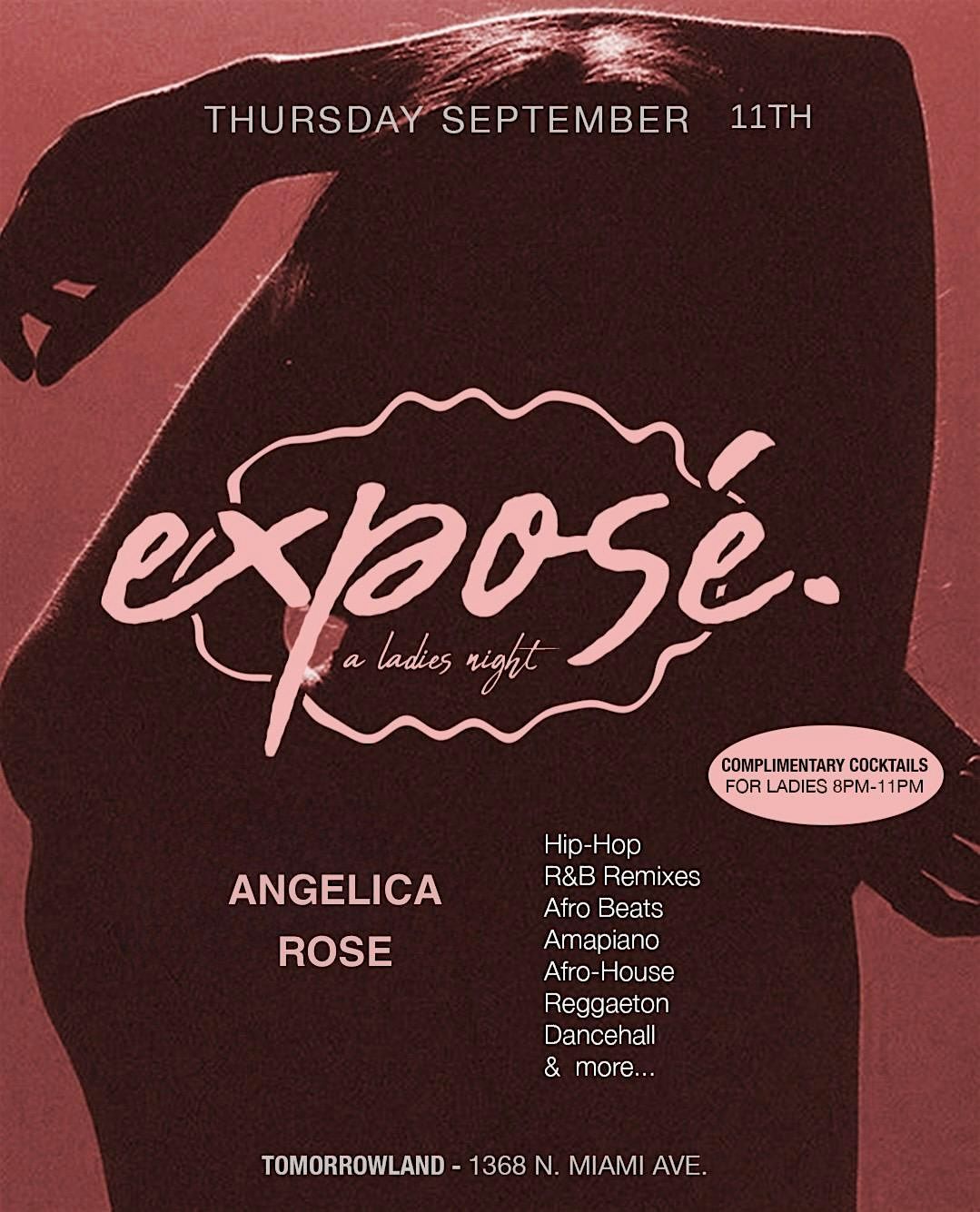 Thursdays in Miami just found its glow. EXPOSÉ is all about the ladies—complimentary cocktails flow from 8–11PM, while the vibe continues to 2am and the energy is on full tilt at TomorrowLand Miami. Blending hip hop, rnb, danchall, & international sounds, Angelica Rose sets the tone—fun, sexy, and nothing but good energy. For the women, it’s a night to own; for the men, it’s the only place to be.