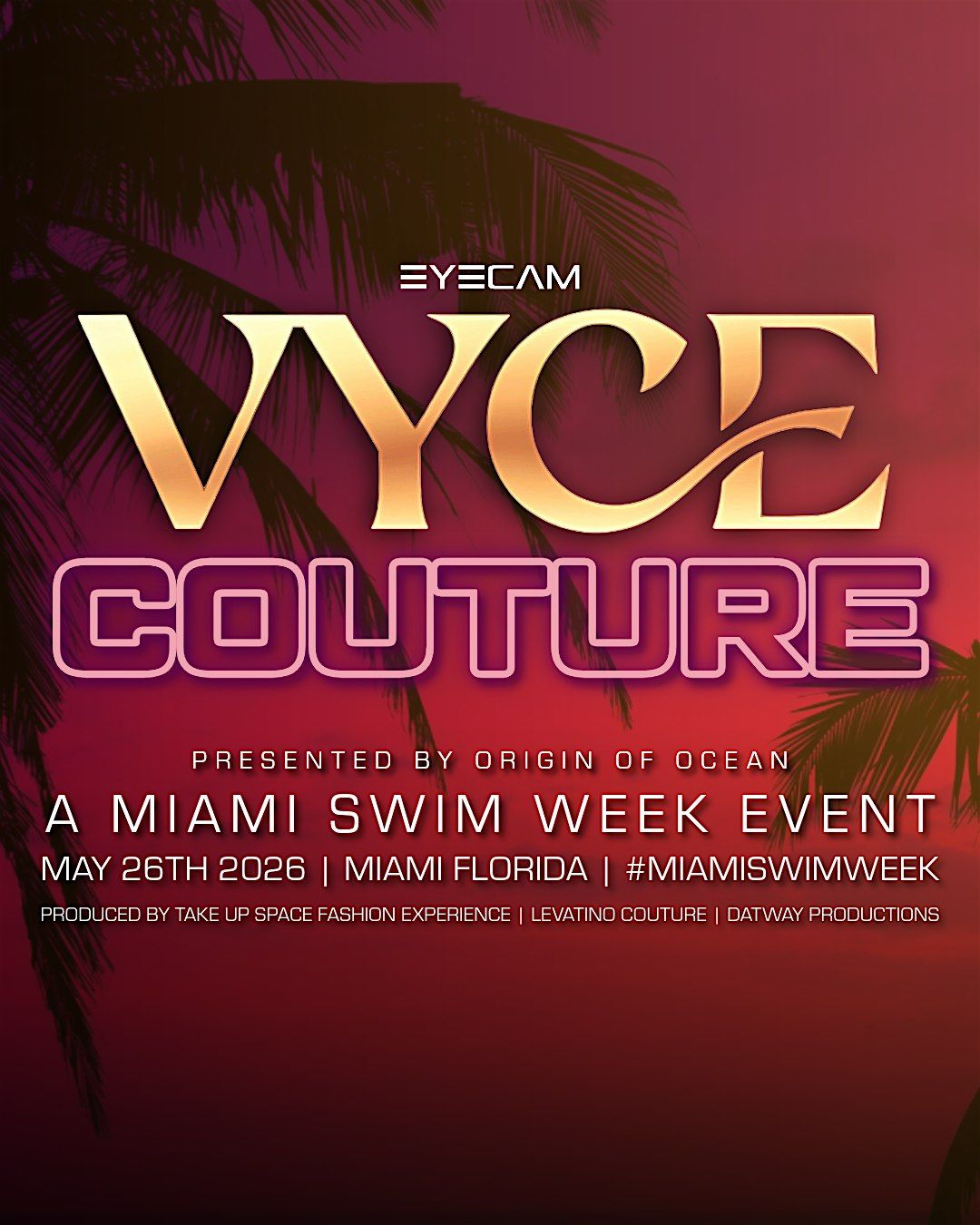 EYECAM PHOTOGRAPHY welcomes you to the VYCE COUTURE - our second runway event of 2026 & a massive showcase to kick off Miami Swim Week 2026! EYECAM Events have an excellent reputation to do everything with one moto in mind - Bigger & Better.