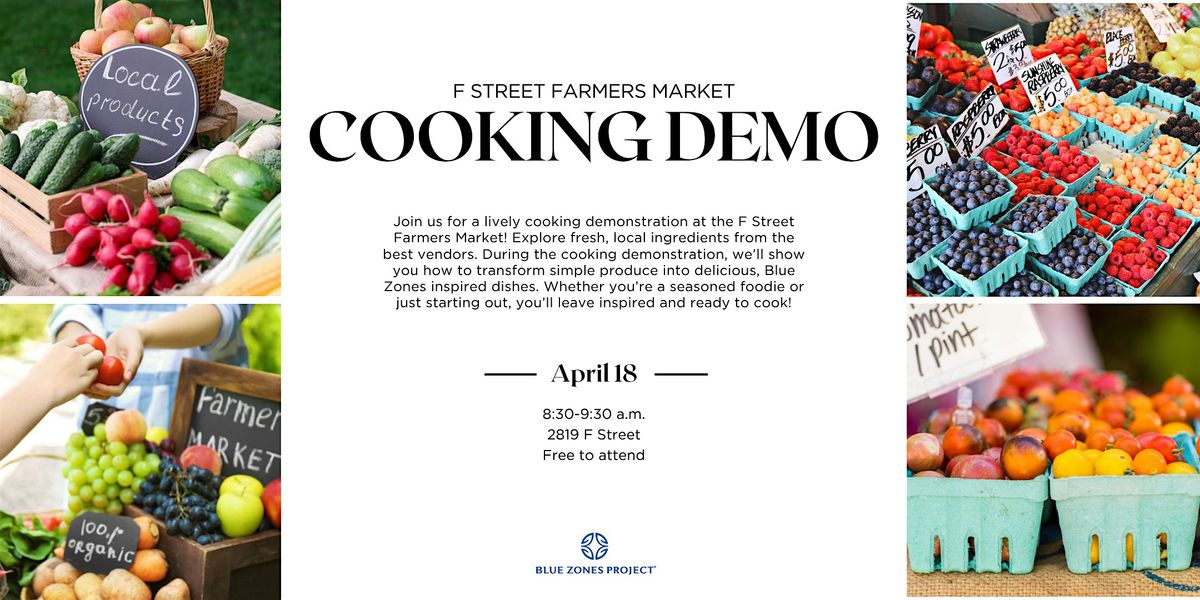 Join us for a lively cooking demonstration at the F Street Farmers Market! Explore fresh, local ingredients from the best vendors. During the cooking demonstration, we’ll show you how to transform simple produce into delicious, Blue Zones inspired dishes. Whether you’re a seasoned foodie or just starting out, you’ll leave inspired and ready to cook!