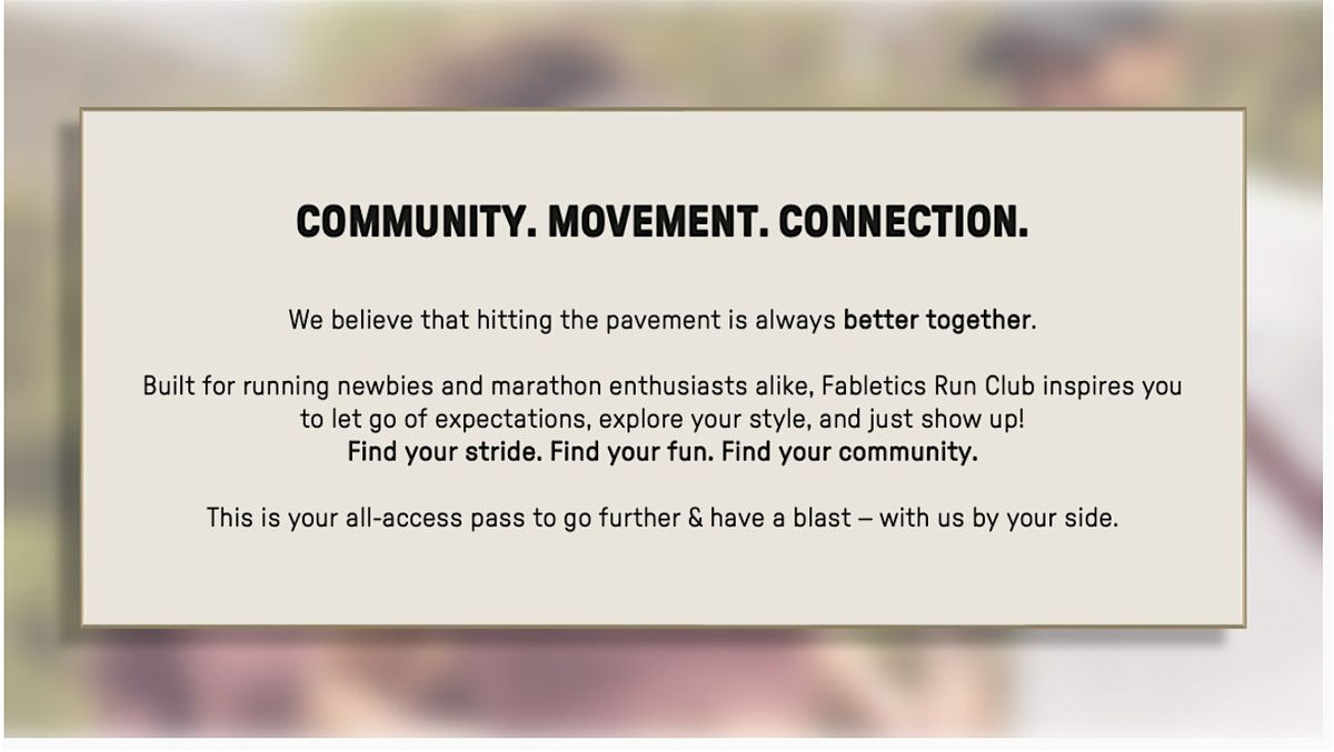 Wear comfortable running shoes and your best Fabletics fit! Don’t forget to bring water, sunglasses, and any gear you may need for the weather.