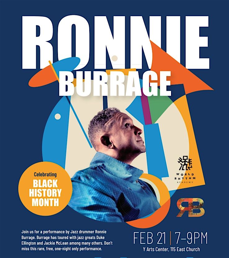 Don't miss this one-time only event featuring jazz drummer Ronnie Burrage in celebration of Black History month. Burrage has toured with jazz greats Duke Ellington and Jackie McLean among many others.
