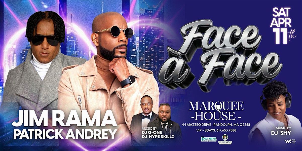 FACE & FACE JIM RAMA & PATRICK ANDREY straight from Paris will be Live on stage at Marquee House Saturday April 11-2026,DJ BazyMix & DJ Flow will be spinning for the Night, Early Bird Tickets @ $30,only Few to Purchase, for Tables Reservation call or Text 617-653-758.