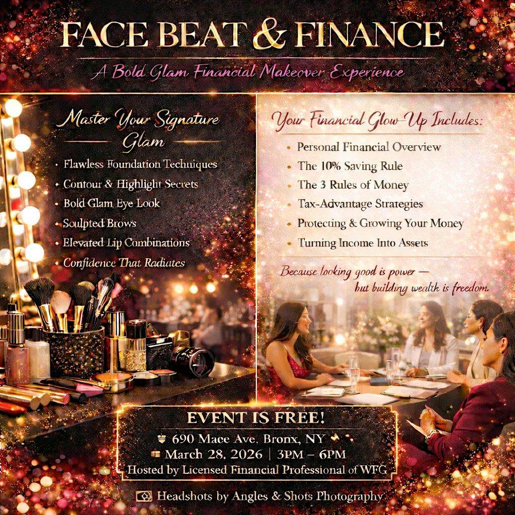 Join us in person for a fun and unique event where creativity meets money talk! Whether you're into beats or budgets, this is the place to be. Mix, mingle, and learn how to keep your face and finances looking fresh. Don’t miss out on good vibes, great tips, and even better company!