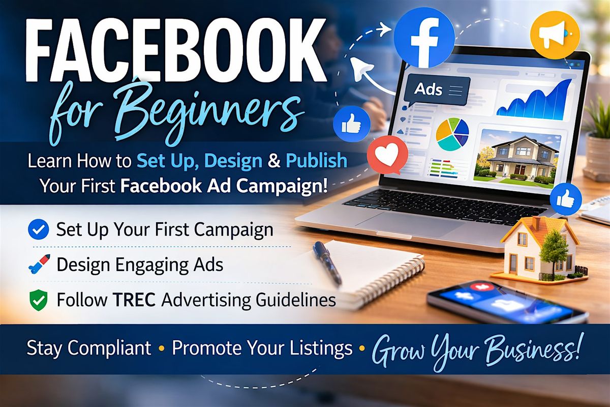 his course will walk Realtors step-by-step through how to set up, design, and publish their first Facebook Ad campaign.