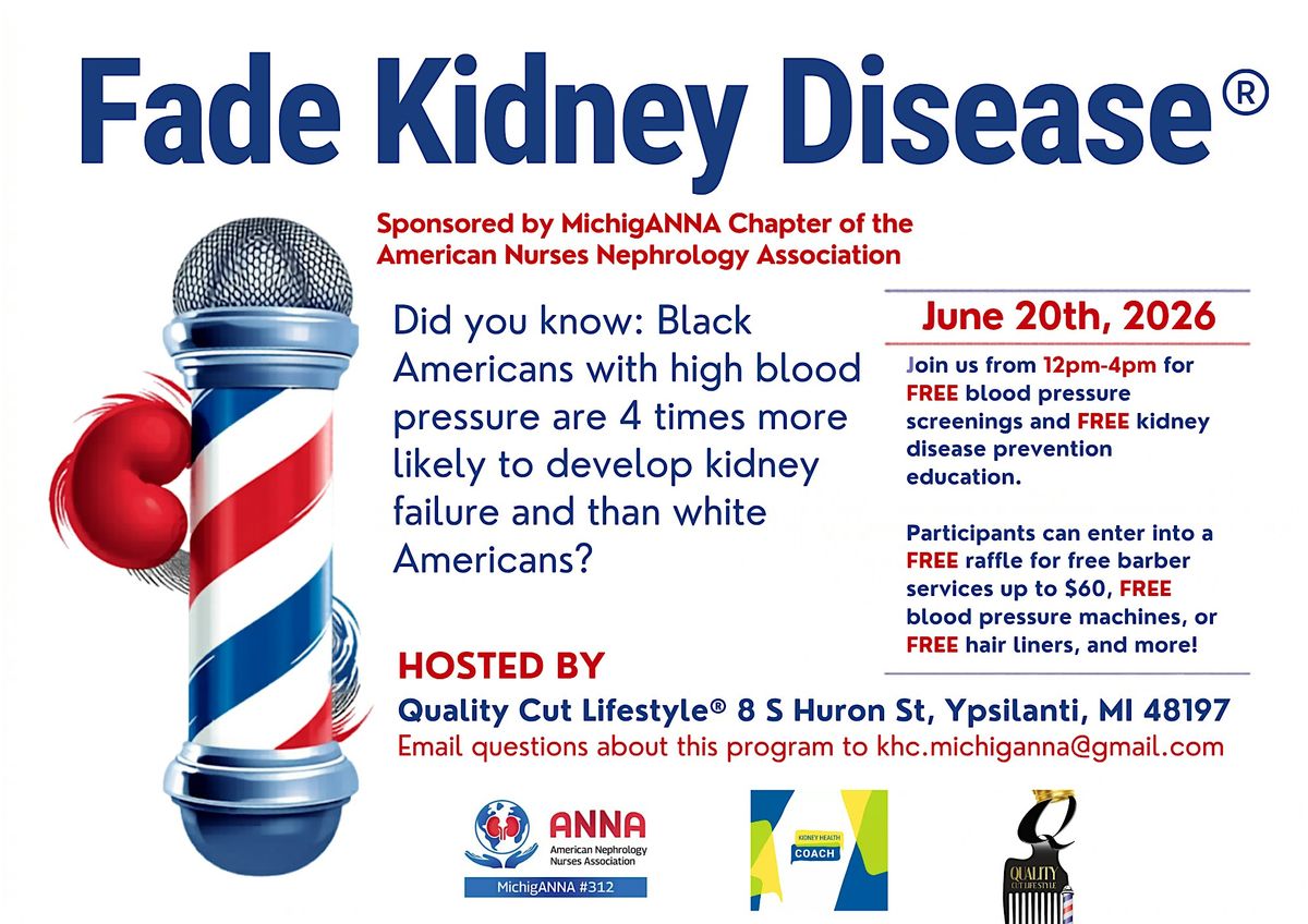 The MichigANNA Chapter of the American Nephrology Nurses Association's in-person event, Fade Kidney Disease, at Quality Cut Lifestyle is the perfect way to connect with kidney nurse professionals who care.