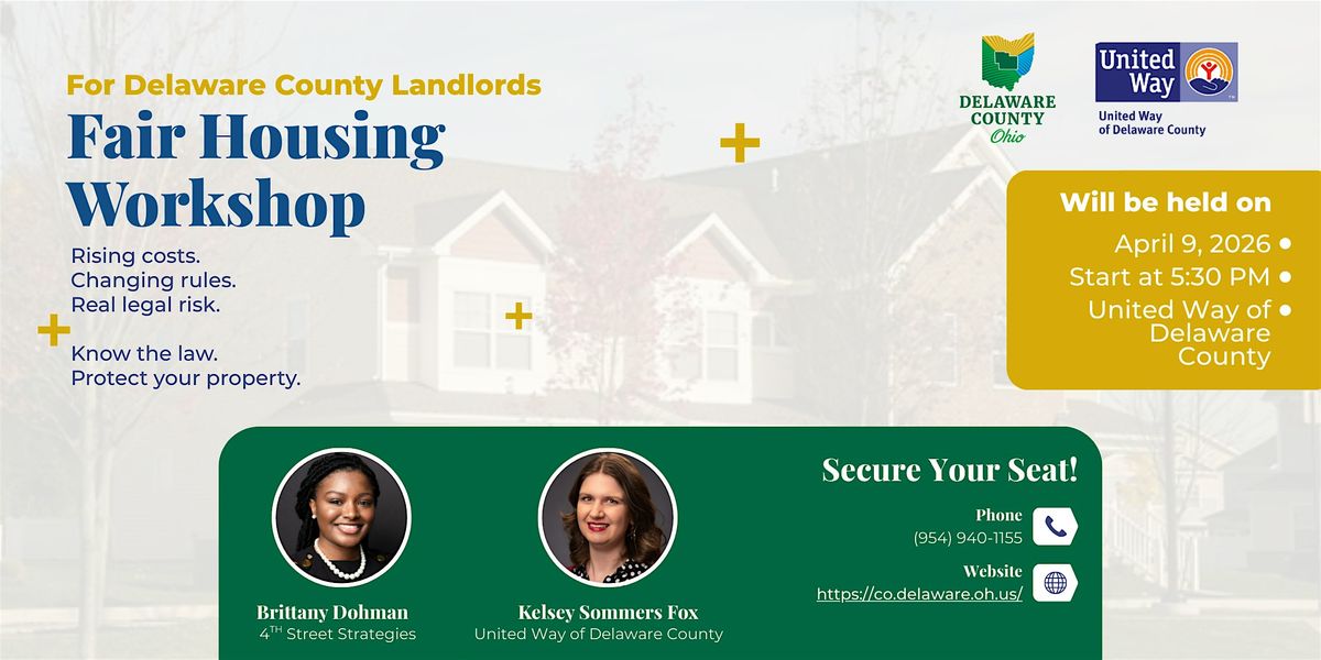 This Fair Housing Compliance Training for Landlords is hosted by the Delaware County Housing Department, in partnership with United Way of Delaware County. The session focuses on practical, day-to-day decision-making — not theory or legal jargon.