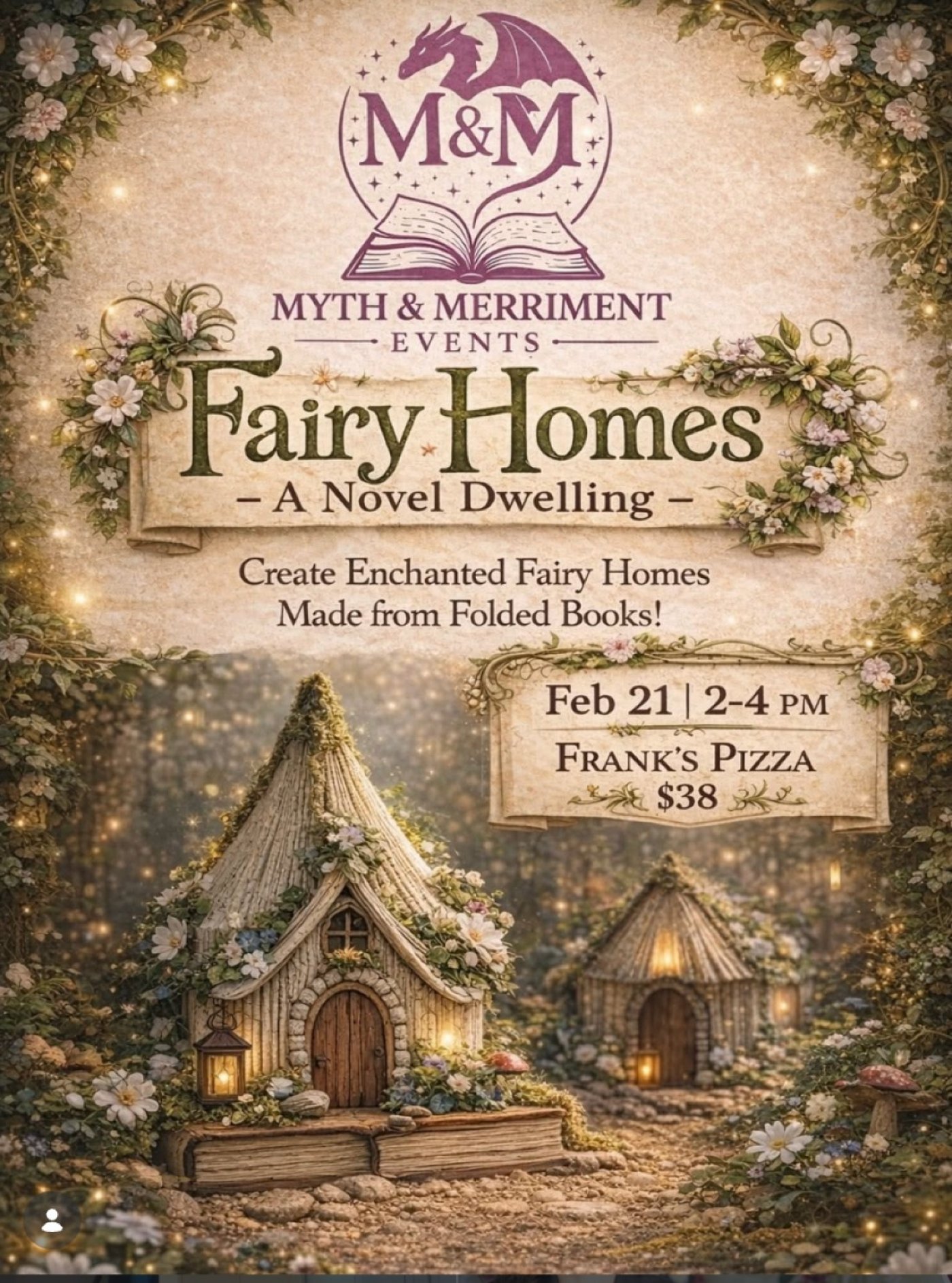 Transform a beloved book into a whimsical fairy house as you learn the art of book folding and bring hidden magic to life between the pages. Guided by Myth & Merriment, this cozy, creative workshop invites you to slow down, craft with intention, and create a storybook home worthy of the fae.