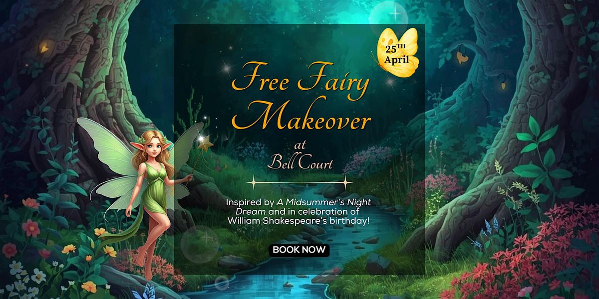 Step into a world of magic this Shakespeare’s Birthday at Bell Court with our enchanting Free Fairy Makeover experience, inspired by A Midsummer Night’s Dream.