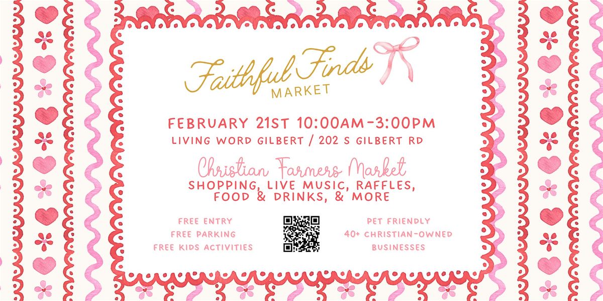 Faithful Finds Market is a family-friendly Christian farmers market in Gilbert, Arizona, featuring Christian-owned small businesses and a welcoming community atmosphere.