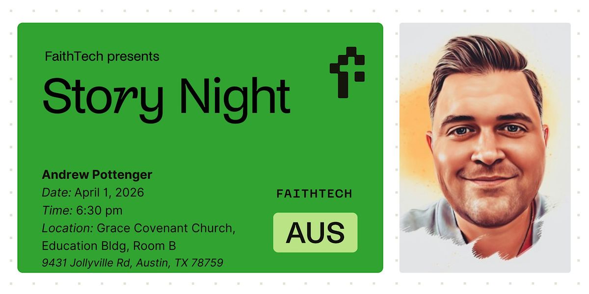 Join us in person for a fun and inspiring evening at FaithTech Austin! Dive into powerful stories and connect with the community as Andrew Pottenger shares his journey. It’s a great chance to meet like-minded folks, enjoy some engaging talks, and be part of something special. Don’t miss out on this cozy Story Night – we can't wait to see you there!