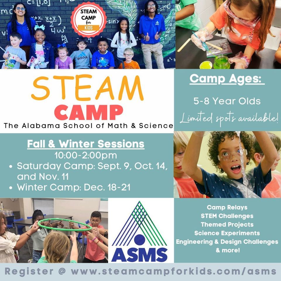 Join us for our series of 3 Saturday Camps this Fall, followed by our 4 day Winter Camp! Open to 5-8 year olds from 10am-2pm at The Alabama School of Math and Science. We'll fill our day with themed STEM projects, challenges, relays and team building fun!