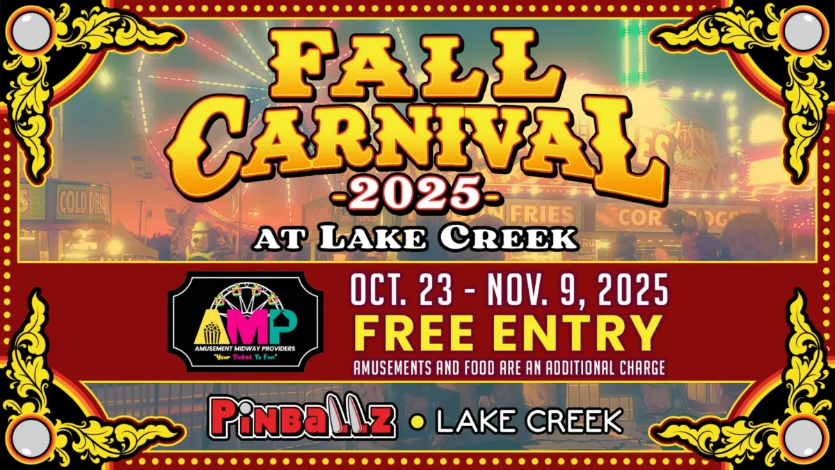 The carnival is back at Pinballz Lake Creek for the fall season!(https://pinballz.com/events/pinballz-lake-creek-fall-carnival-2025/) (http://