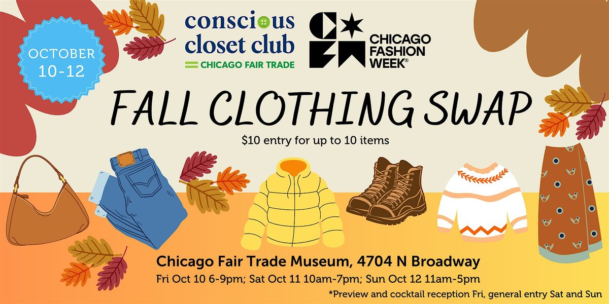 Join Chicago Fair Trade’s Conscious Closet Club for a weekend-long clothing swap at the Chicago Fair Trade Museum. Taking place during Chicago Fashion Week, we welcome swappers of all ages, sizes, and genders to this ever-popular event.
