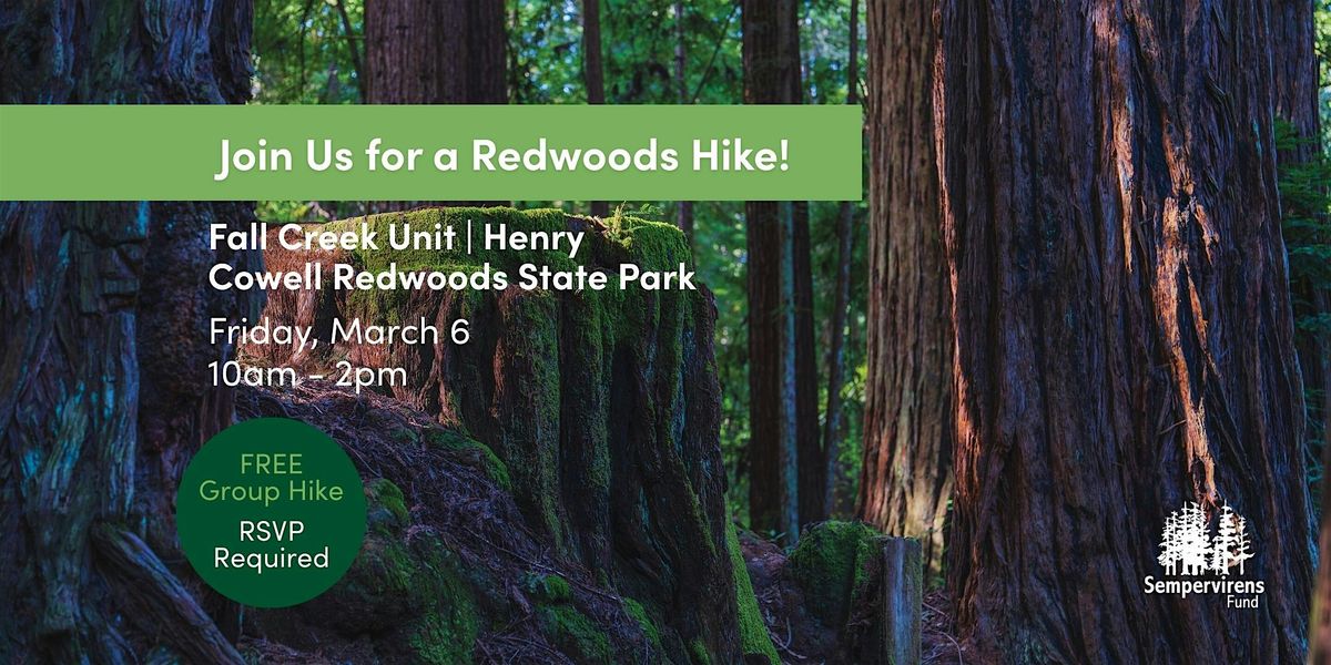 You’re invited to a special guided hike by Sempervirens Fund, a local nonprofit that protects redwood forests in the Santa Cruz Mountains, preserves the plants and animals that make them home, and restores the balance of nature.