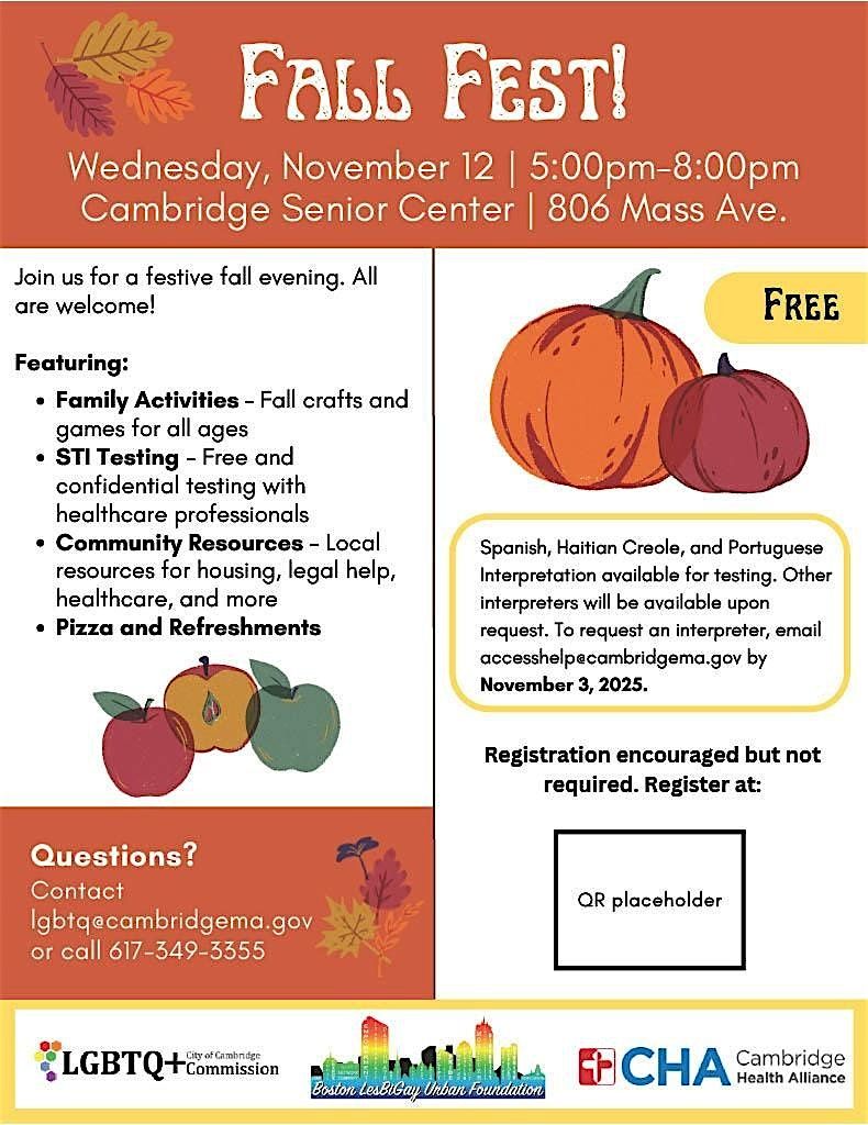 Join us for Fall Fest! Enjoy fun activities, connect with community resources, and take advantage of free STI testing—all in one place.About this Event