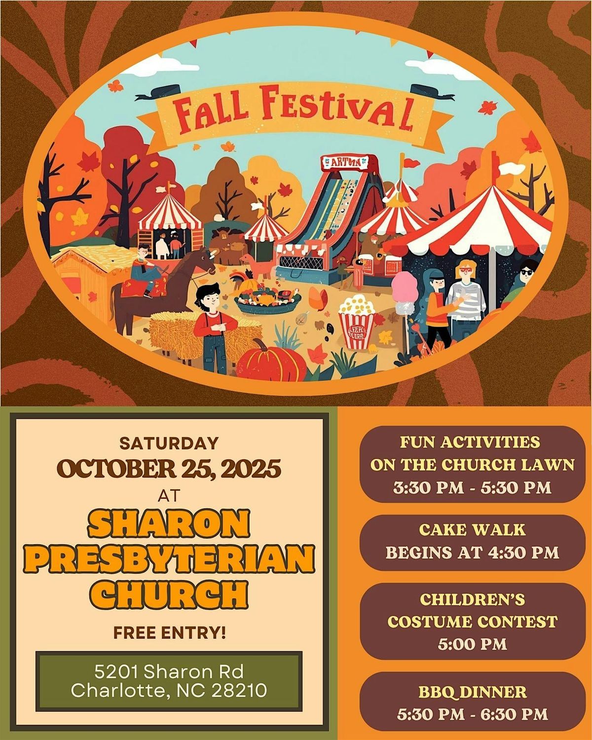 Celebrate the season with hayrides, carnival games, inflatables, and good food!
