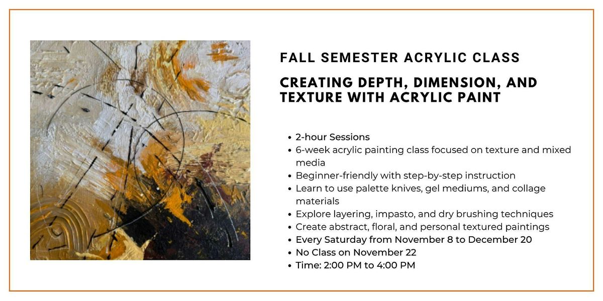 Fall Semester Acrylic Class: The Art of Creating Depth, Dimension & Texture