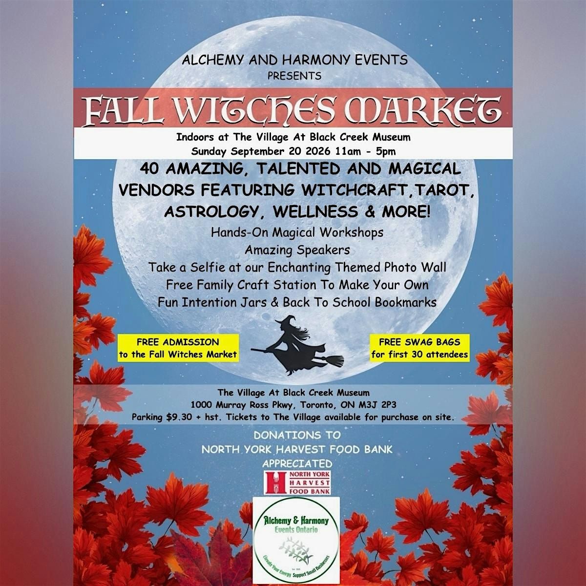 We’ll have a North York Harvest Food Bank drop-off to support local families (non-perishable items welcome)