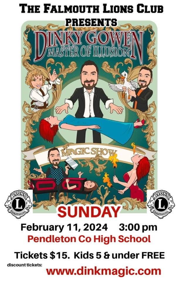Magic, Magic, Magic! The Falmouth Lions Club will be hosting Dinky Gowan, Master Illusionist on Sunday, February 11, 2024 at 3:00 P.M.