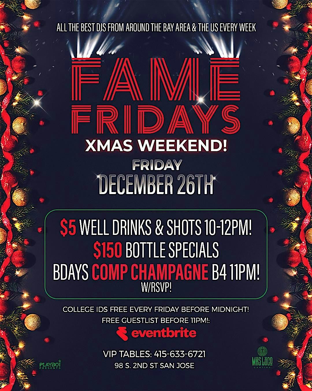 FAME FRIDAYS! Every Friday San Jose Downtown @Mas Loco! Hiphop Top40 House
