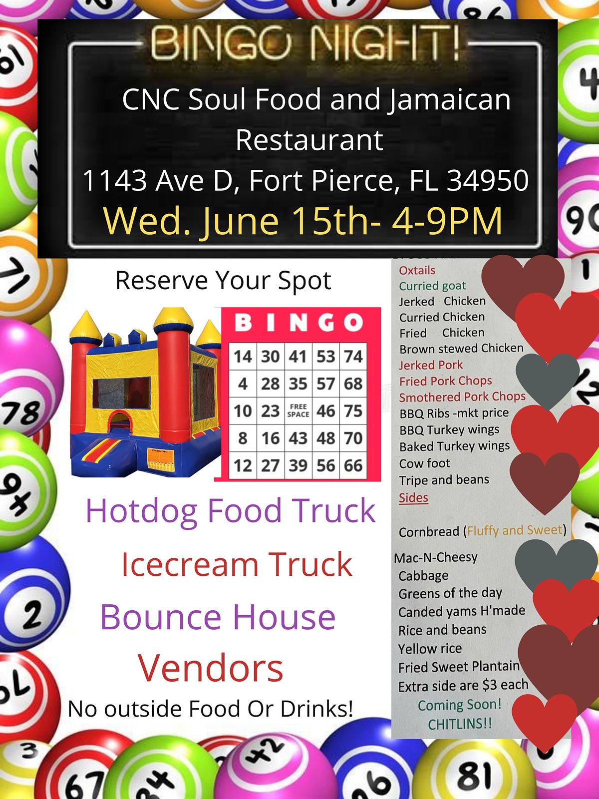 Come on out and enjoy some family fun with Bingo, Great Food, and a Bounce House