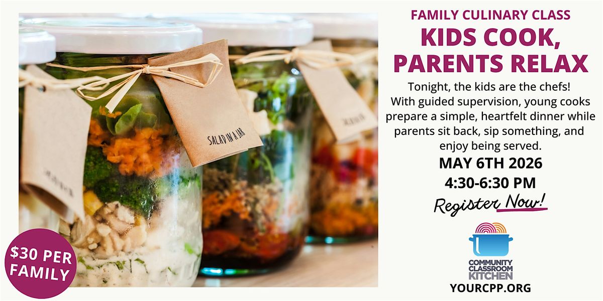 In this family culinary experience, young chefs will create a complete, heartfelt dinner while parents sit back and enjoy being served. The menu includes mini baked ziti cups, garden salad jars, and chocolate-dipped fruit bouquets, all made by the kids with guidance and love.